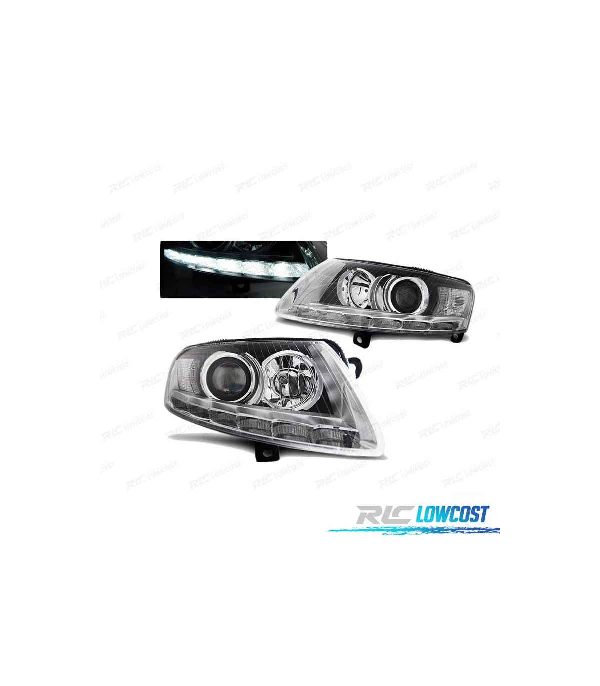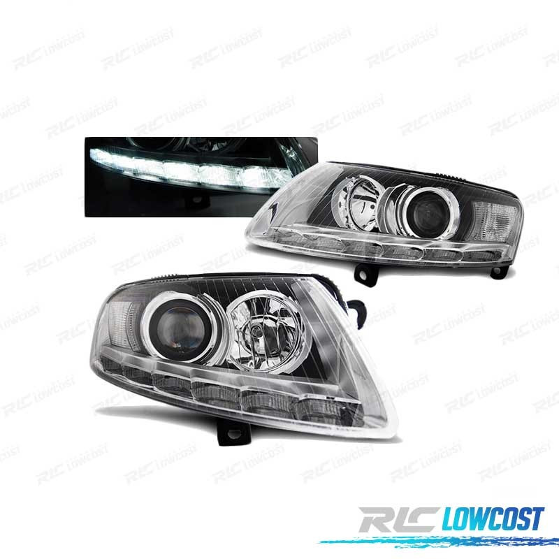 PHARES XENON AUDI A6 C6 04-08 CHROMÉ DRL