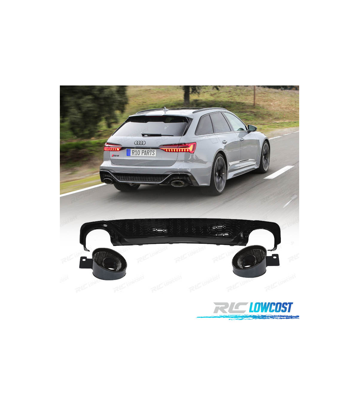 DIFFUSEUR ARRIÈRE AUDI A6 18-22 LOOK RS6 NOIR BRILLANT + EMBOUTS 0---0