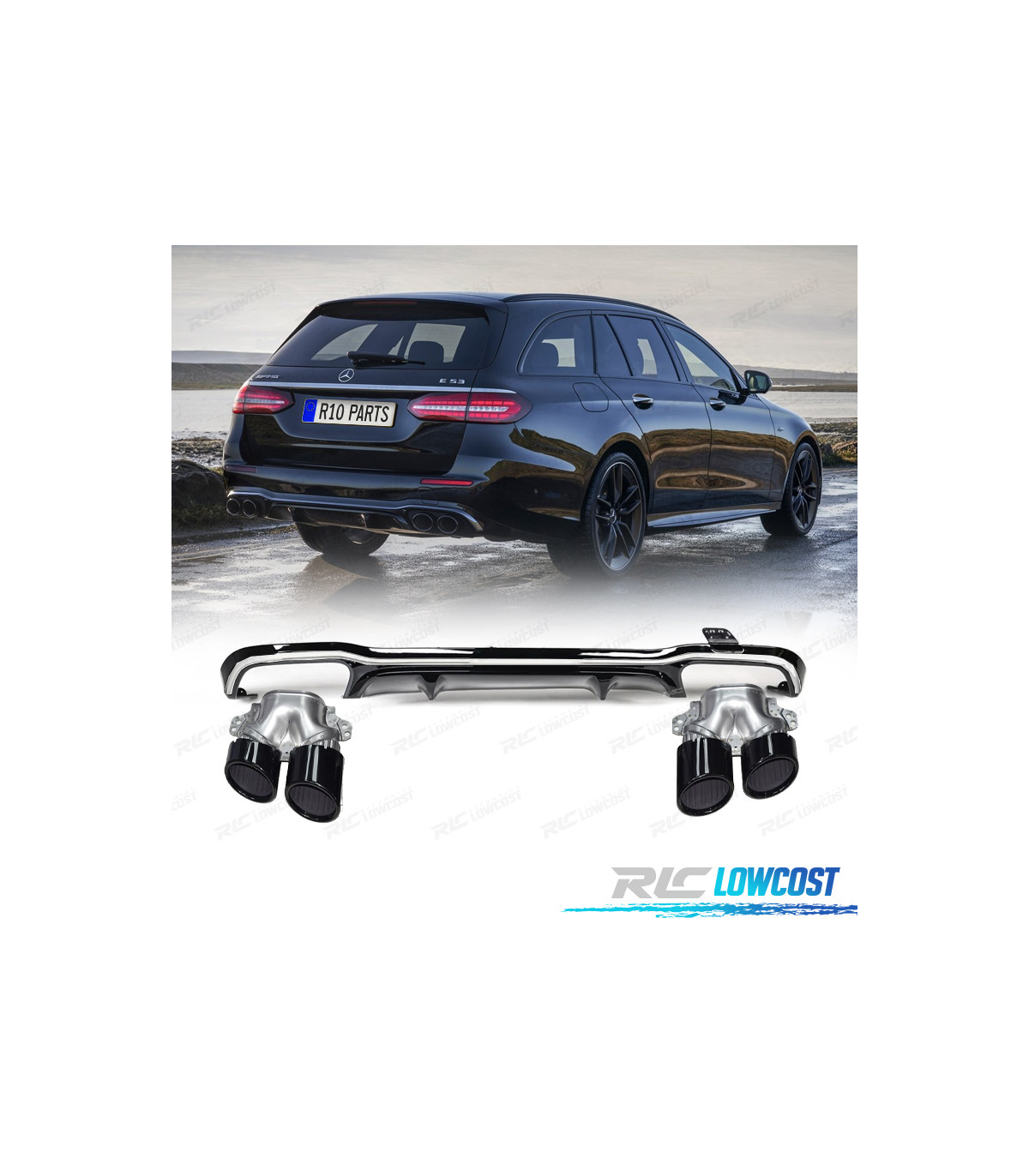 DIFFUSEUR MERCEDES W213 21-23 LOOK E53 NOIR CHROMÉE