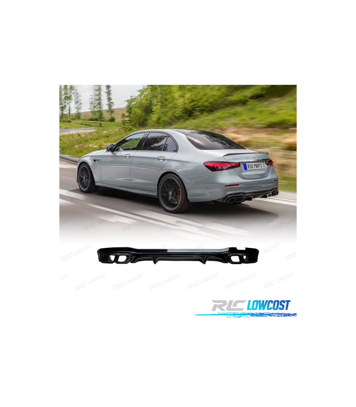 DIFFUSEUR MERCEDES CLASSE E W213 20-24 LOOK AMG NOIR BRILLANT + EMBOUTS D'ÉCHAPPEMENT
