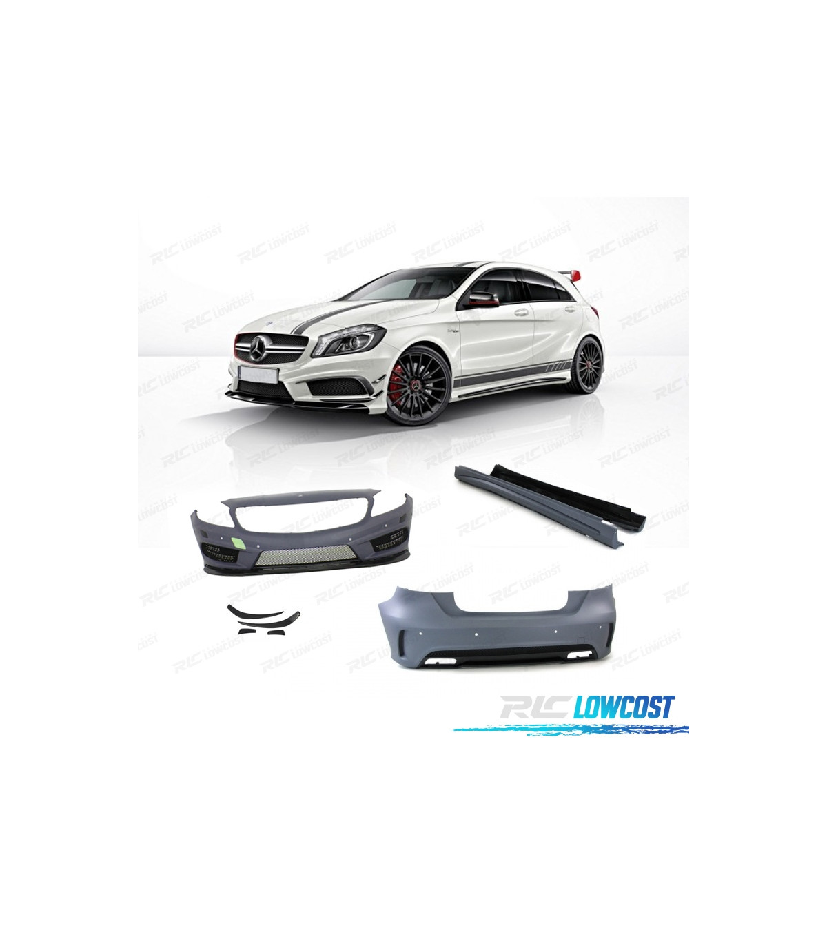 KIT CARROSSERIE MERCEDES CLASSE A W176 LOOK AMG A45 PDC + LAVE PHARES