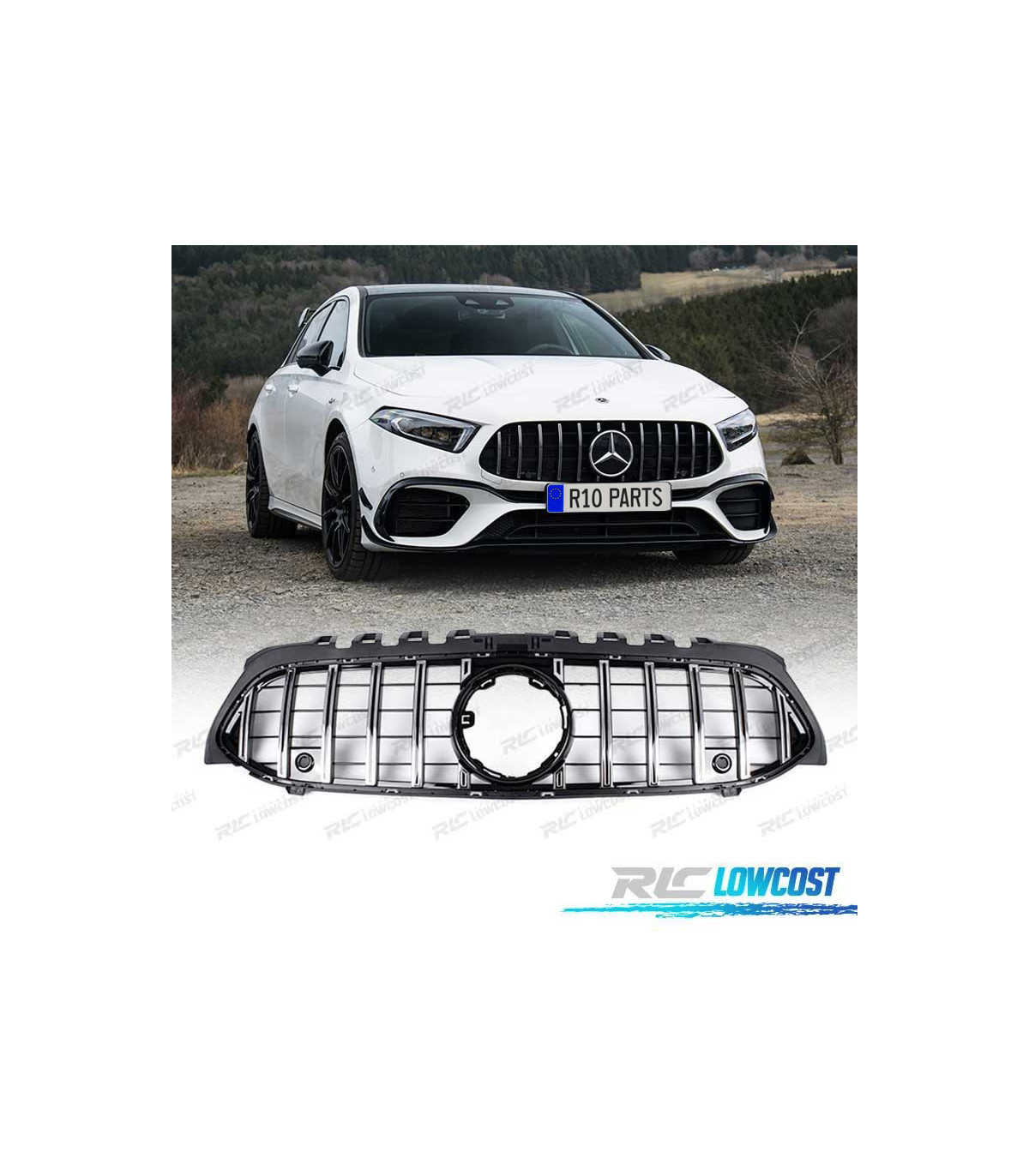 CALANDRE MERCEDES CLASSE A W117 V177 LOOK AMG GT NOIR CHROMÉ