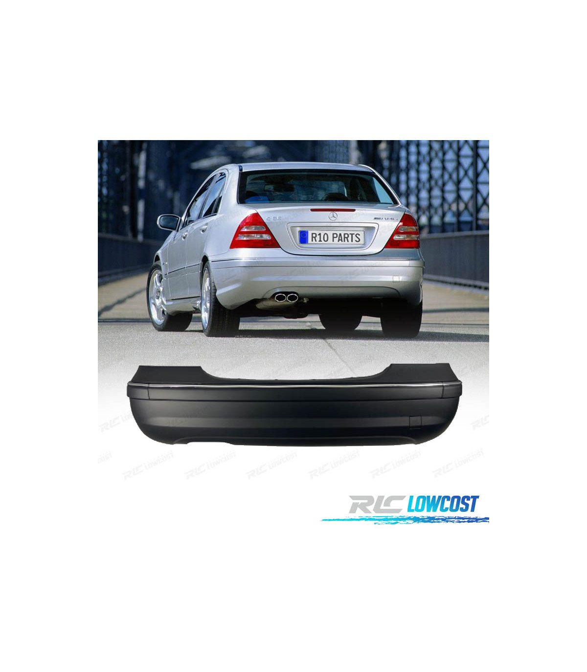 PARE CHOCS ARRIERE MERCEDES CLASSE C W203 BERLINE 01-07 LOOK C32 AMG DOUBLE SORTIE GAUCHE