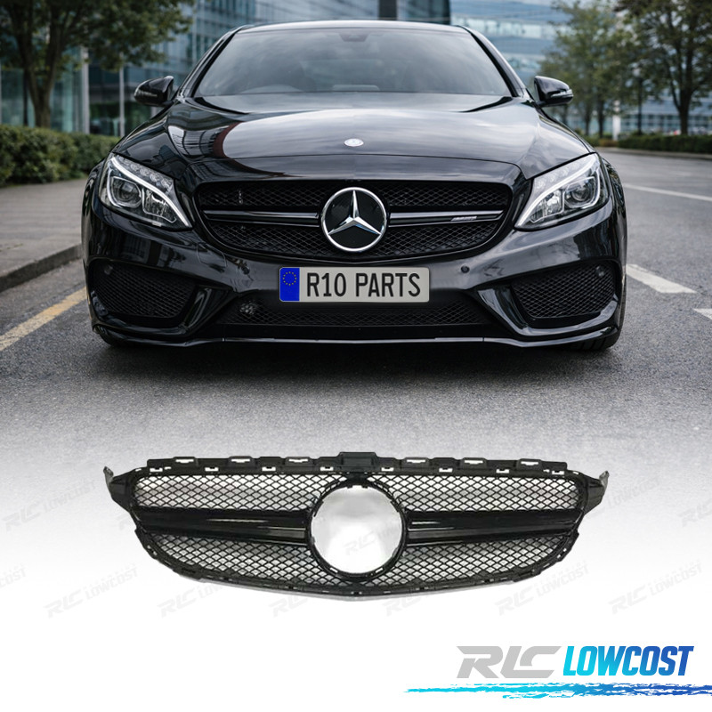GRILLE MERCEDES W205 14-18 LOOK AMG C63 CAMÉRA NOIR BRILLANT