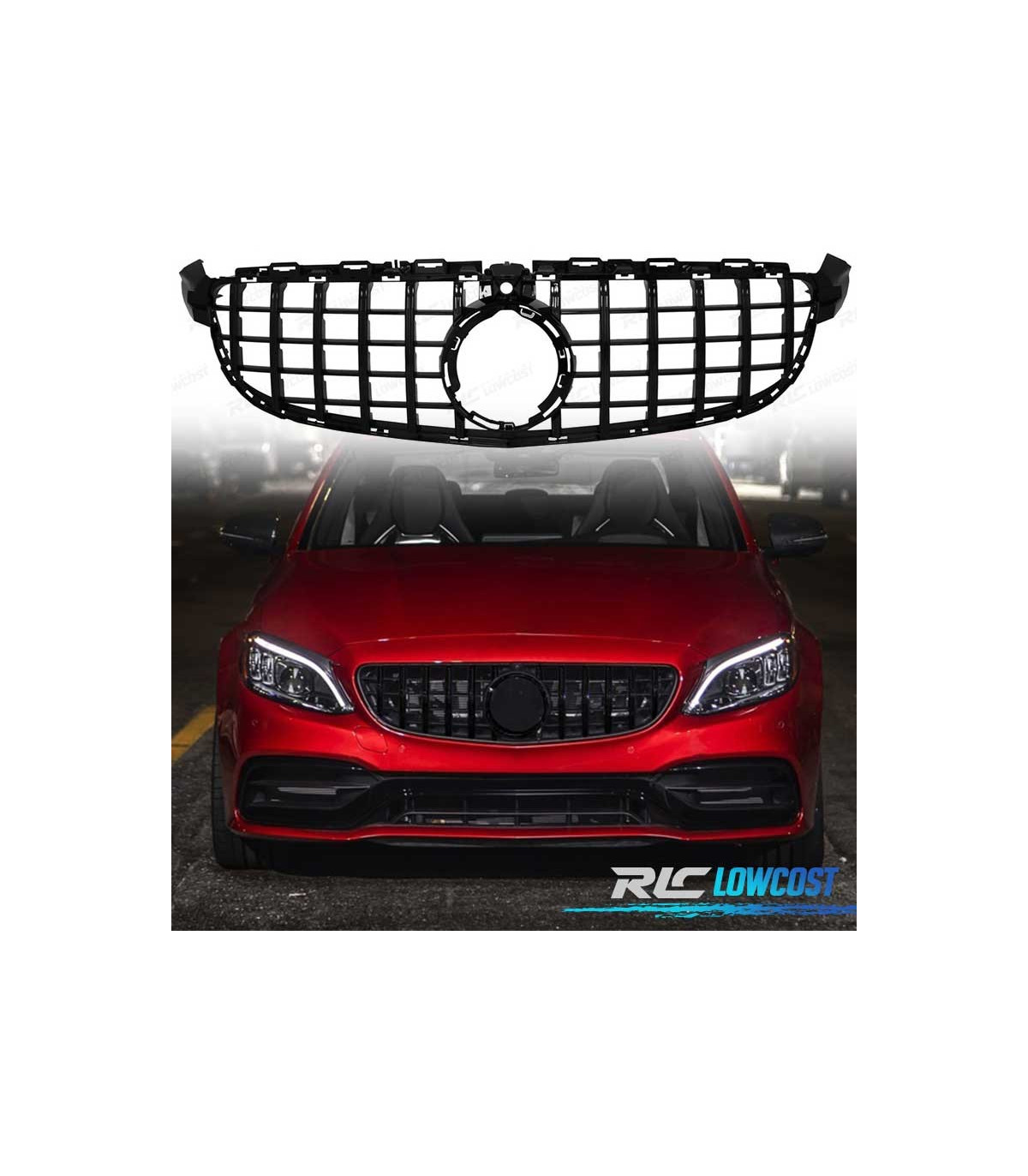 CALANDRE MERCEDES W205 15-17 LOOK AMG GT CAMÉRA NOIR BRILLANT