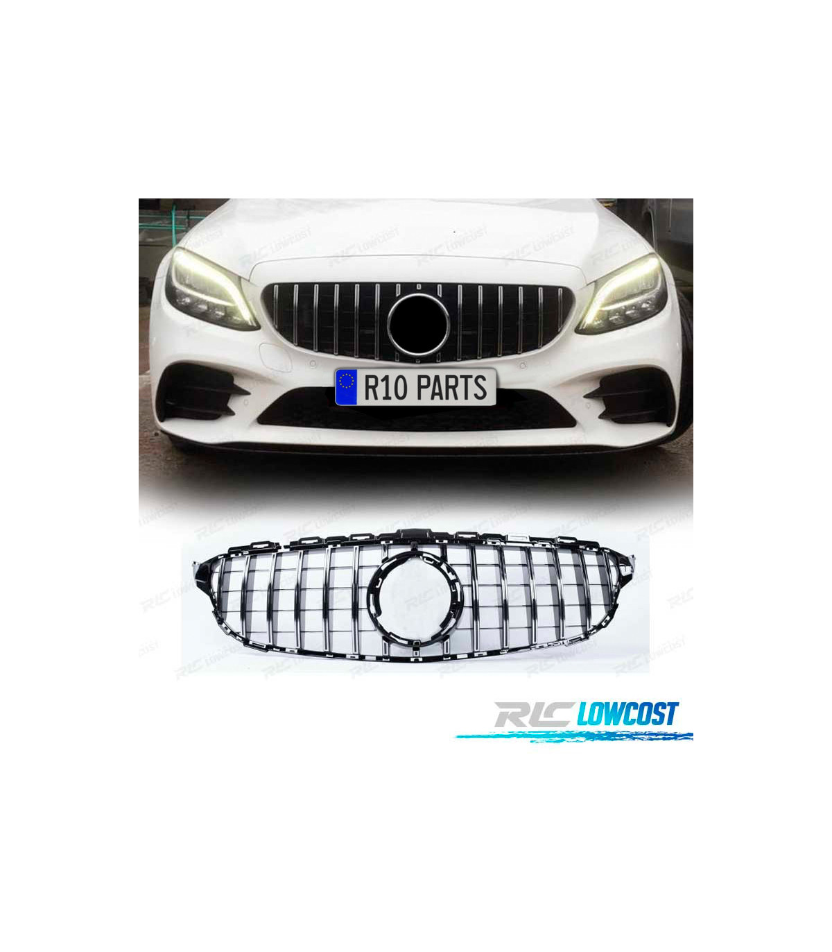 CALANDRE MERCEDES W205 S205 14-18 LOOK AMG GT NOIR CHROMÉ