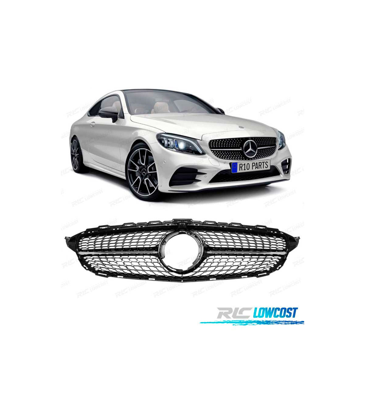 CALANDRE MERCEDES W205 AMG 14-18 LOOK DIAMOND NOIR CAMERA