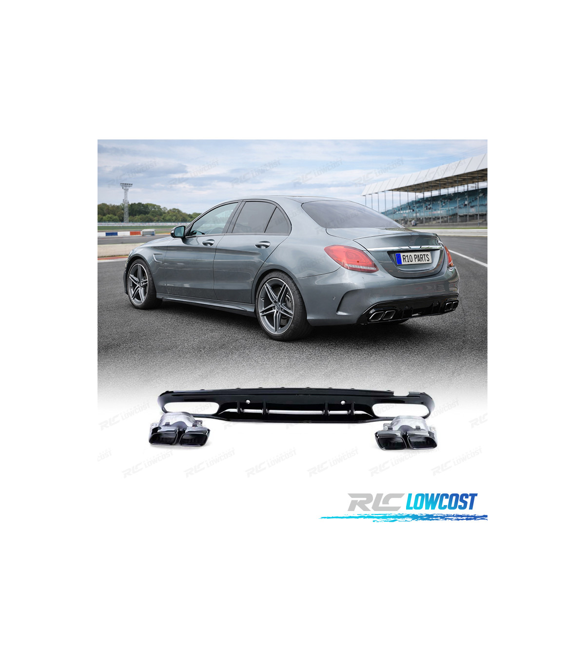 DIFFUSEUR MERCEDES CLASSE C W205 BERLINE 18-21 LOOK AMG NOIR BRILLANT +EMBOUT D´ÉCHAPPEMENT