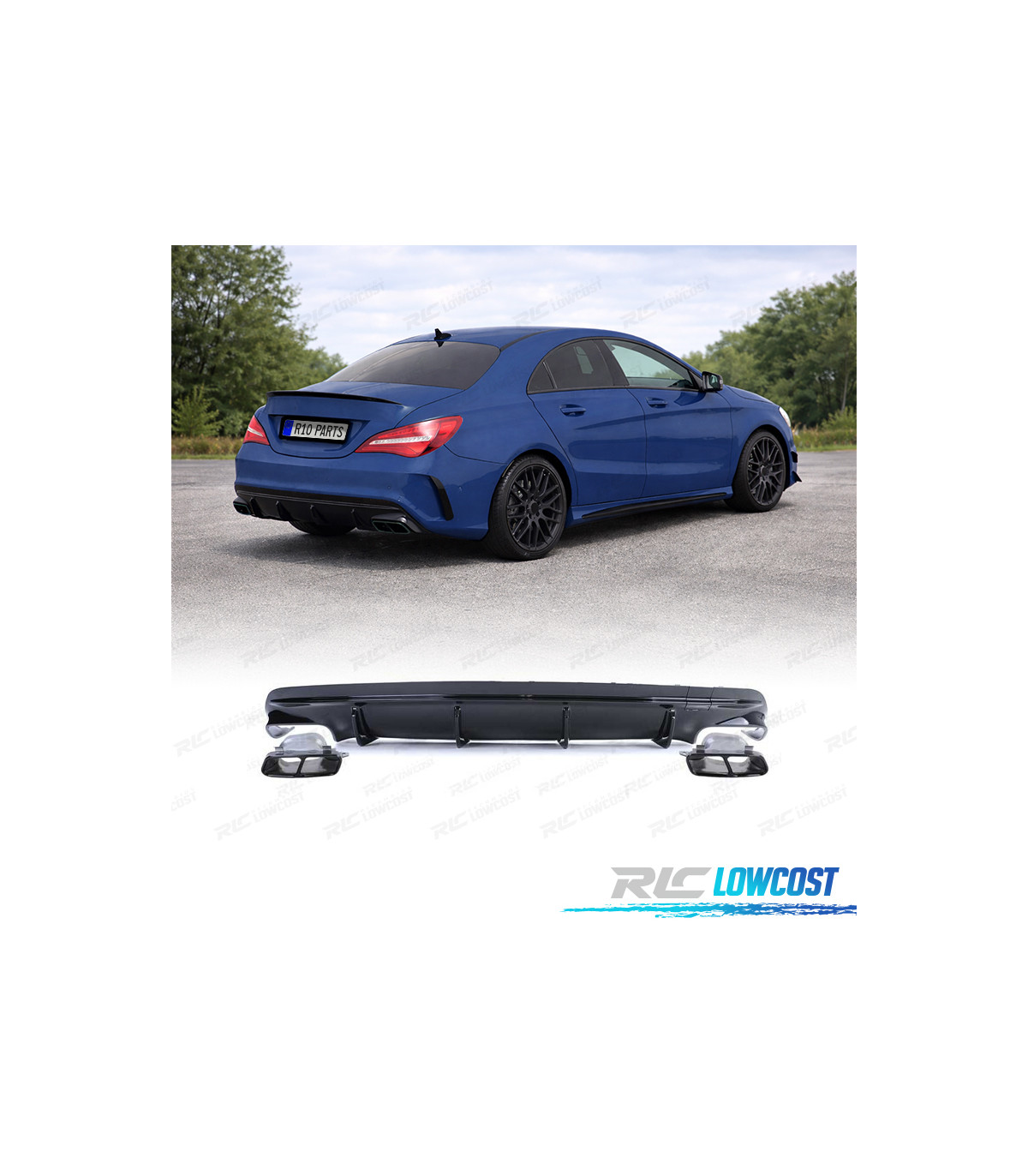 DIFFUSEUR MERCEDES CLA C117 16-19 LOOK AMG NOIR BRILLANT + EMBOUTS D'ÉCHAPPEMENT