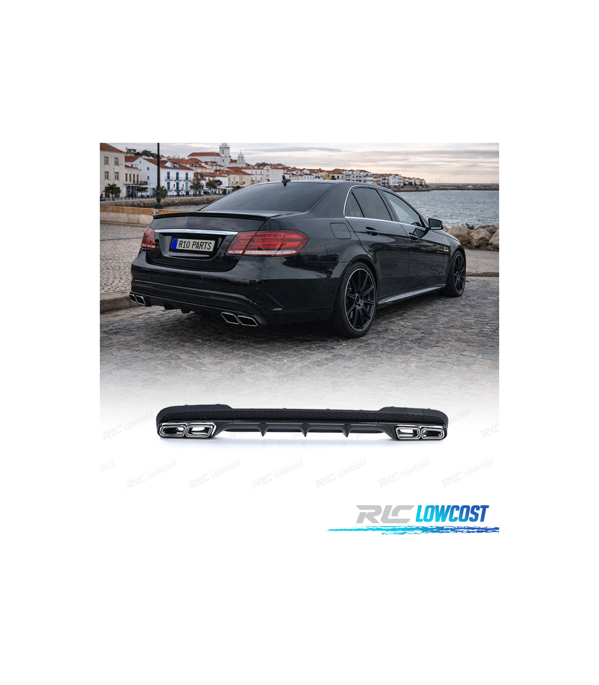 DIFFUSEUR MERCEDES CLASSE E W212 BERLINE 13-16 LOOK AMG E63 + EMBOUTS D'ÉCHAPPEMENT CHROMÉS