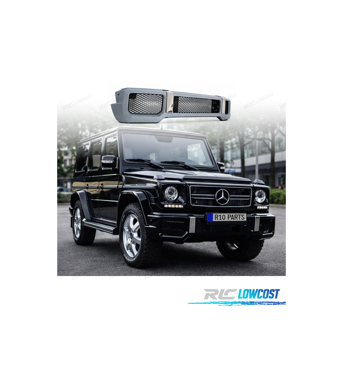 - Inclus: grilles centrales, grilles latérales, support de plaque d'immatriculation.