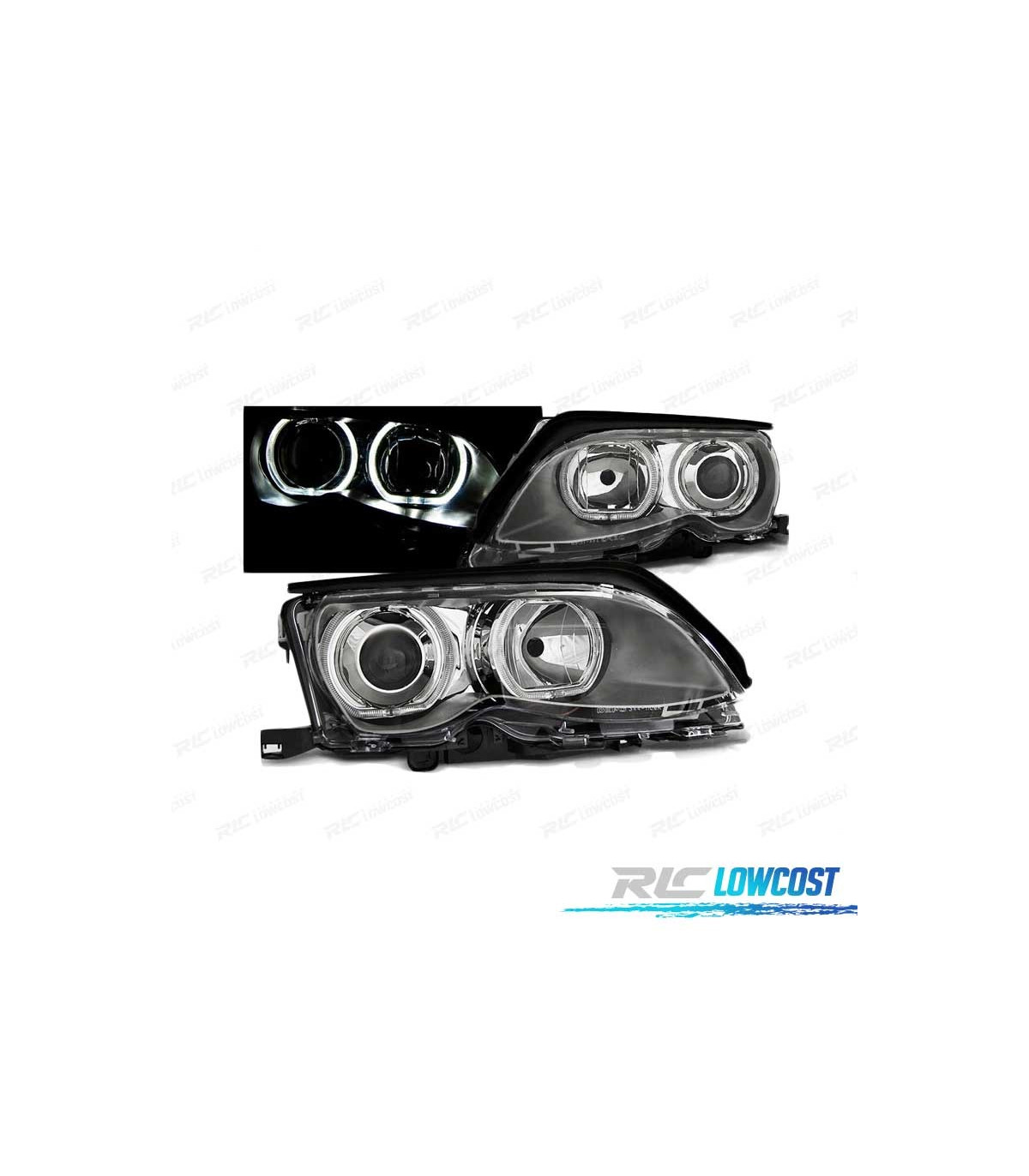 PHARES BMW E46 01-05 LED ANGEL EYES CHROMÉ