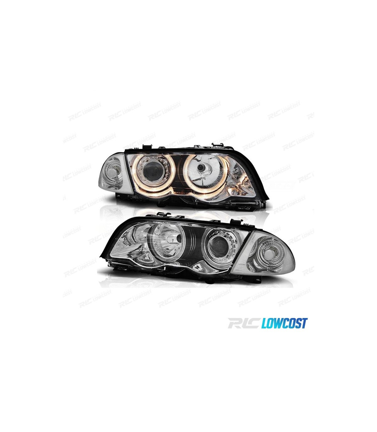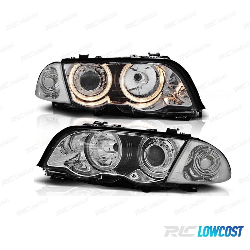PHARES BMW E46 98-01 YEUX D'ANGE HALOGÈNE FOND CHROME