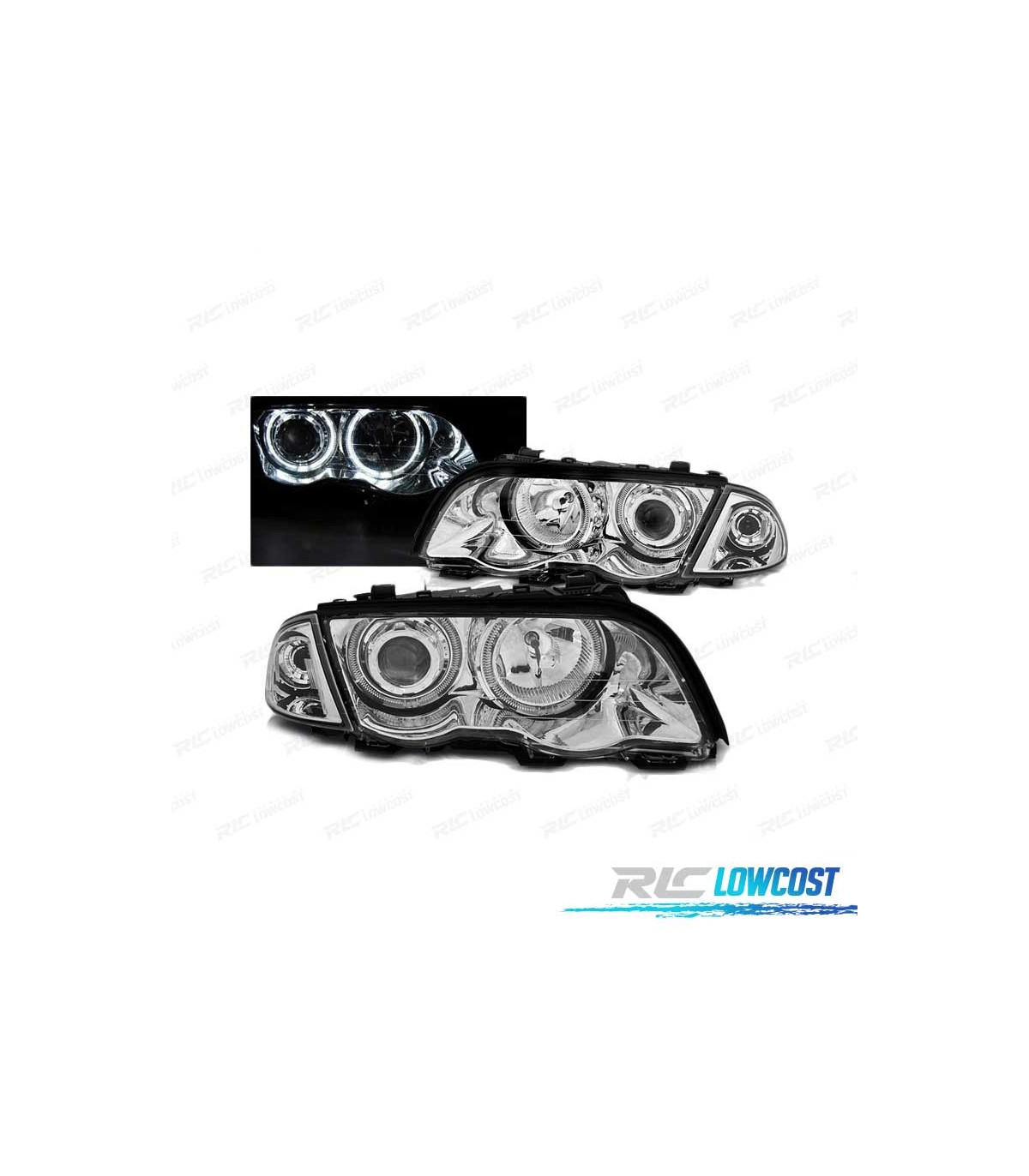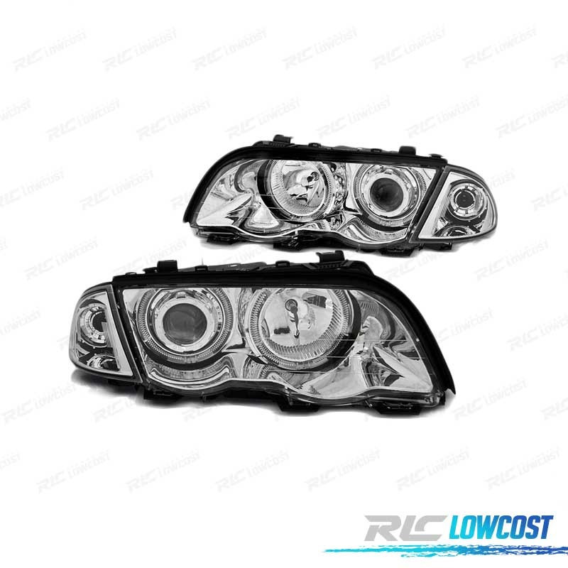 PHARES BMW E46 98-01 YEUX ANGEL LED CHROMÉ