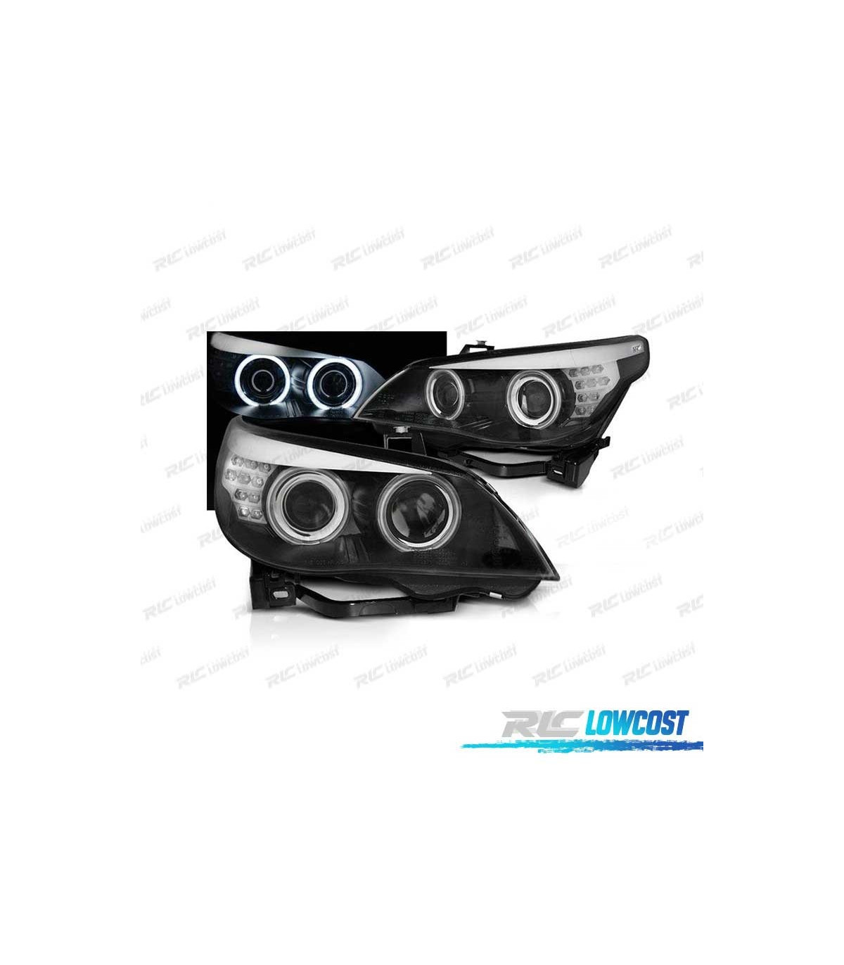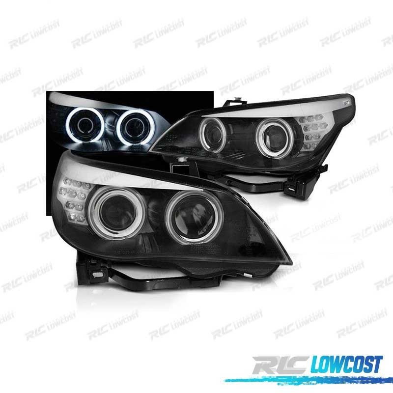 PHARES BMW E60 03-07 ANGEL EYES CCFL FOND NOIR