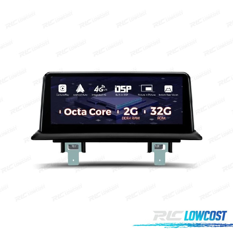 Processeur Octa-Core 64 bits Autochips 25X Pro, 2 Go de RAM externe + 32 Go de ROM Android 12, fonction d'écran, PIP, 1280 x 480 , vidéo Full HD, fente Micro sim (données 4G), 2 x USB, micro à micro. Wi-Fi double bande 2,4 et 5 GHz. DSP intégré