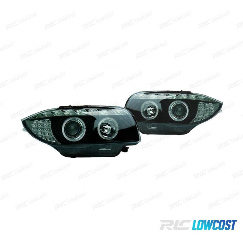 PHARES BMW E81 E87 E82 E88 ANGEL EYES FEUX DE JOUR FOND NOIR