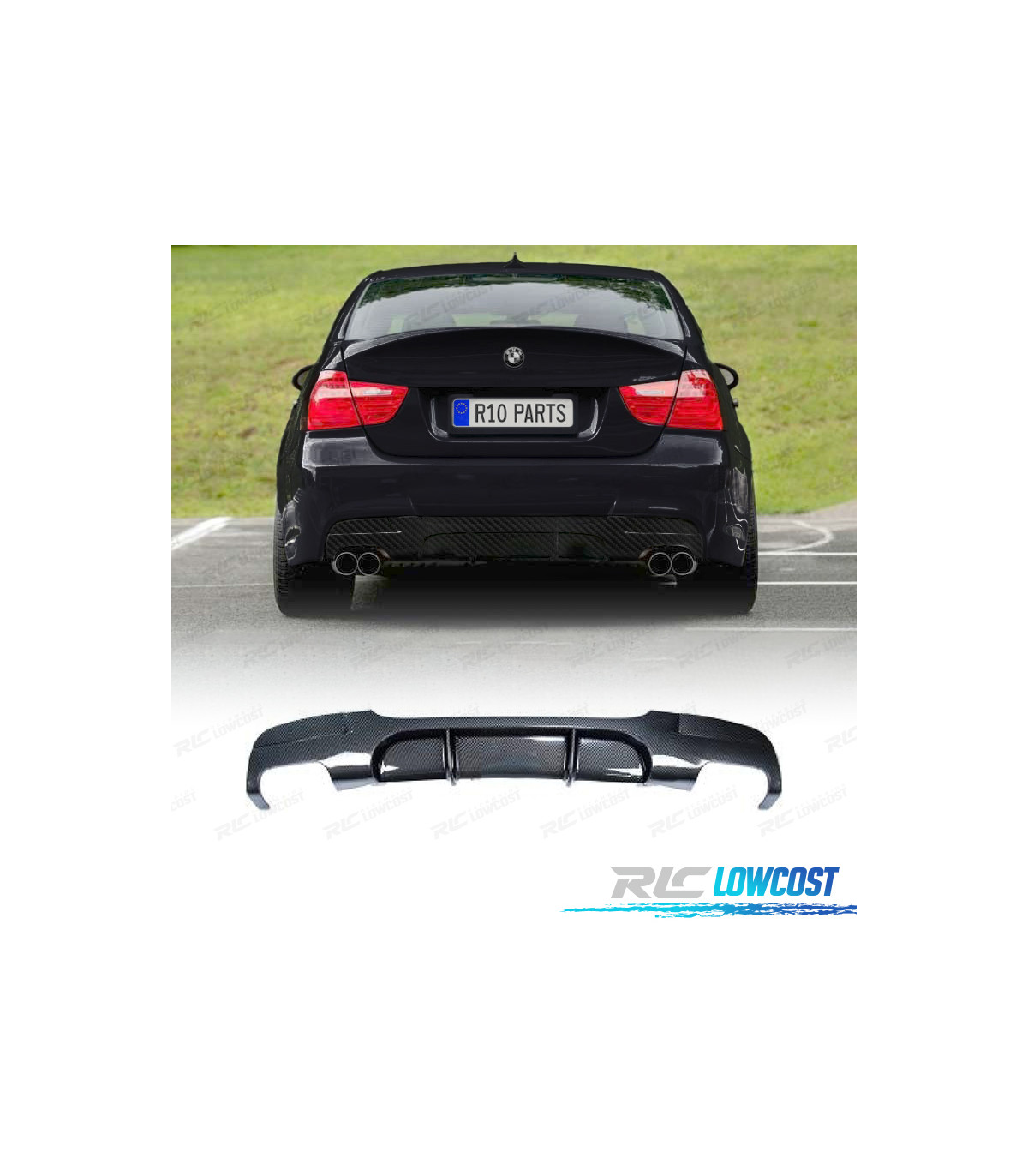 DIFFUSEUR BMW E90 E91 LOOK M PERFORMANCE CARBONE DOUBLE SORTIE