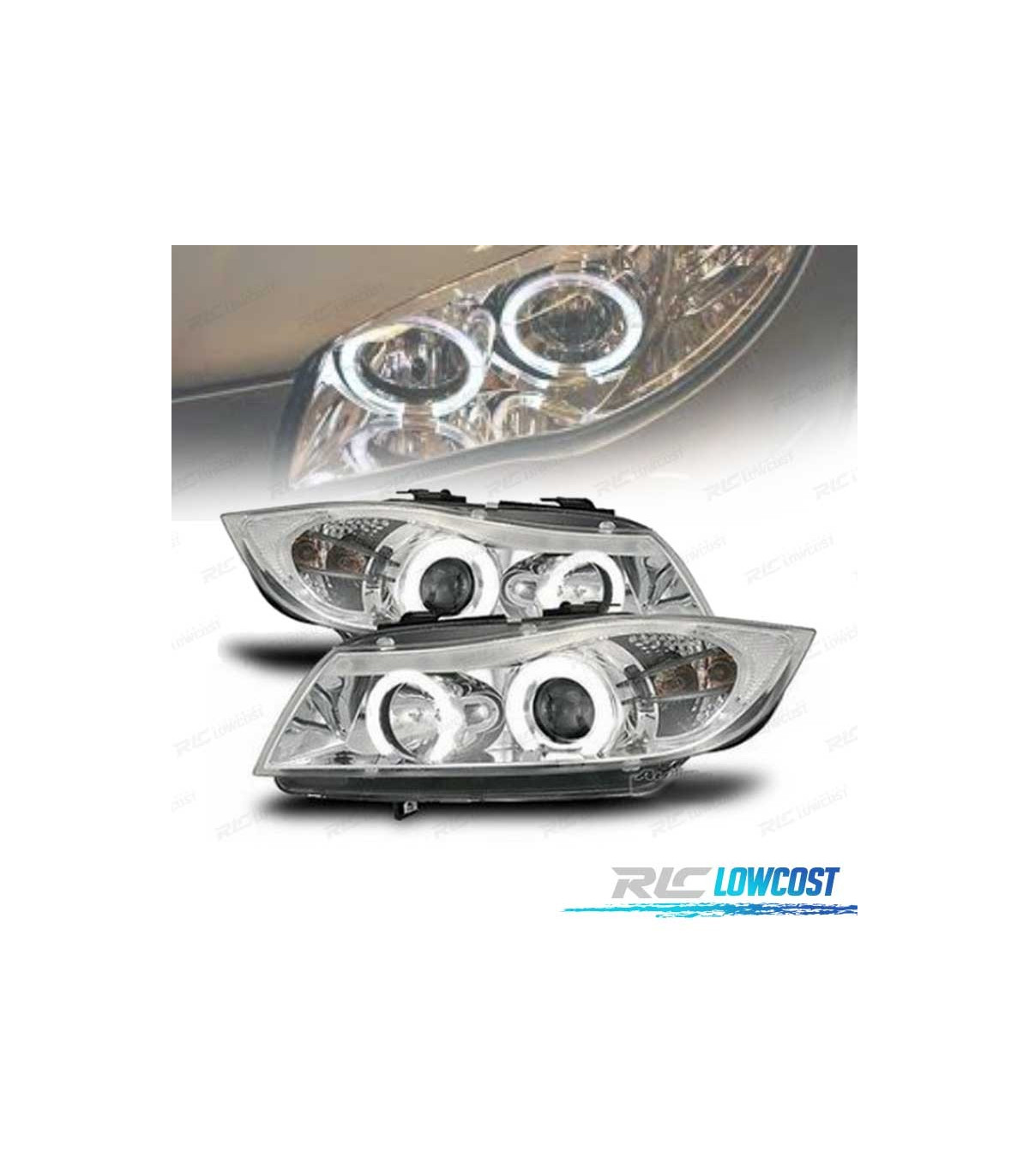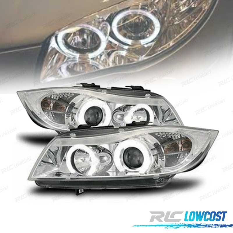 PHARES BMW E90 91 05-08 ANGEL EYES FOND CHROMÉÉ