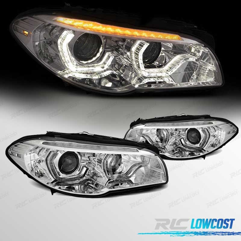 PHARES BMW F10 F11 10-13 XÉNON ANGEL EYES LED 3D DRL DYNAMIQUES CHROMÉ