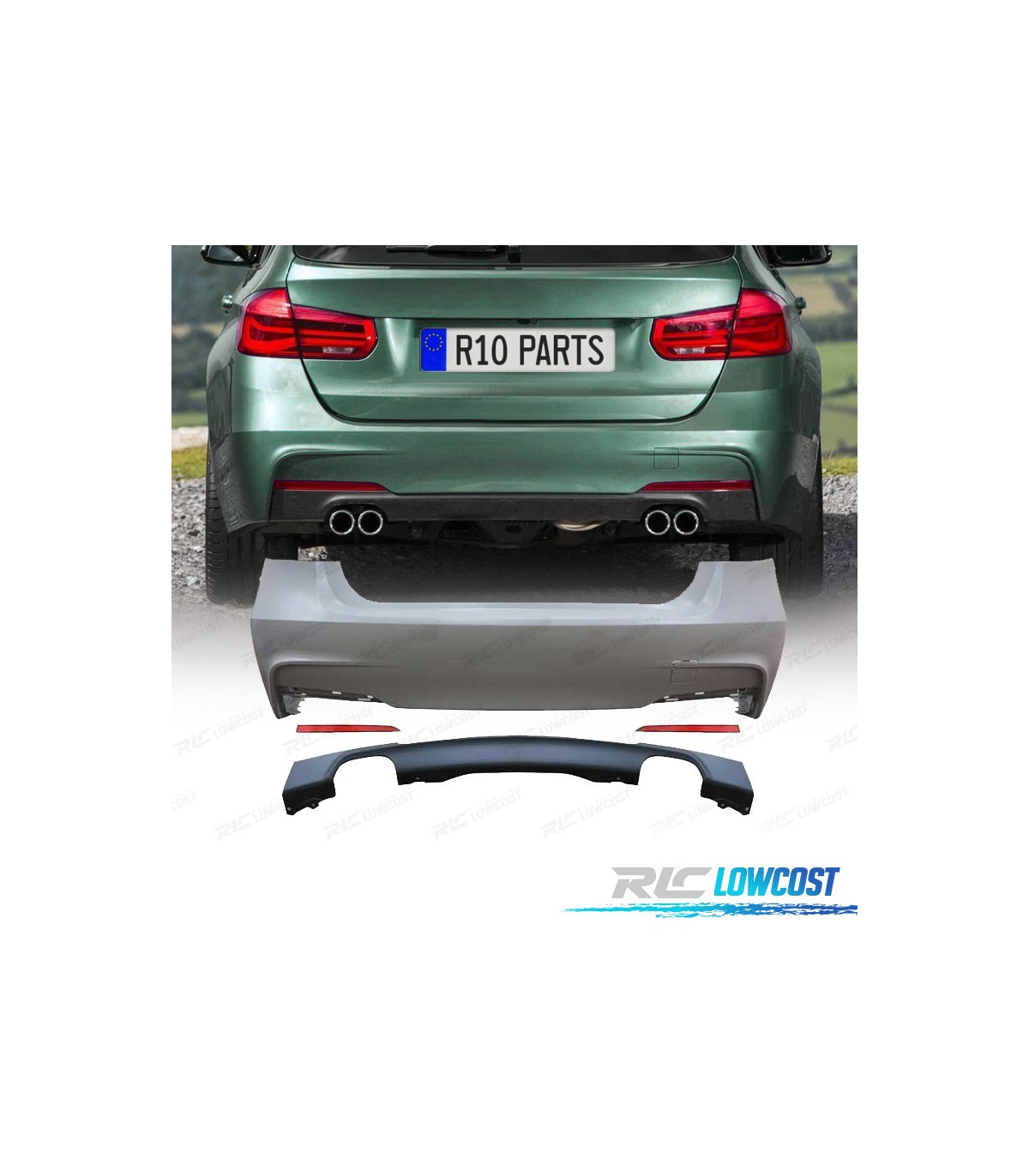 PARE CHOCS ARRIERE BMW F30 12-19 LOOK M DOUBLE SORTIE