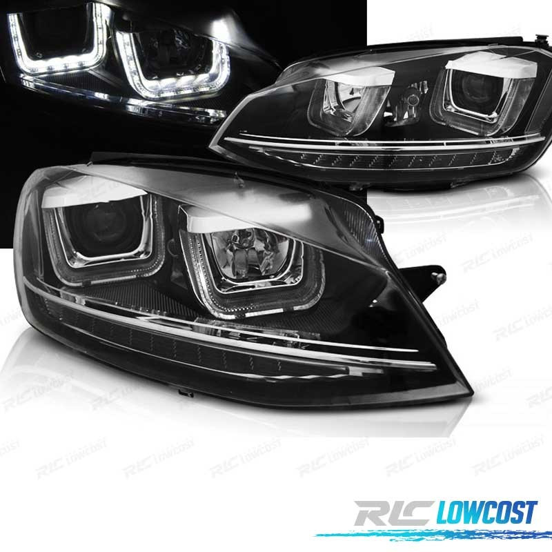 PHARES VOLKSWAGEN VW GOLF 7 12-17 U-TYPE DRL DYNAMIQUES NOIR