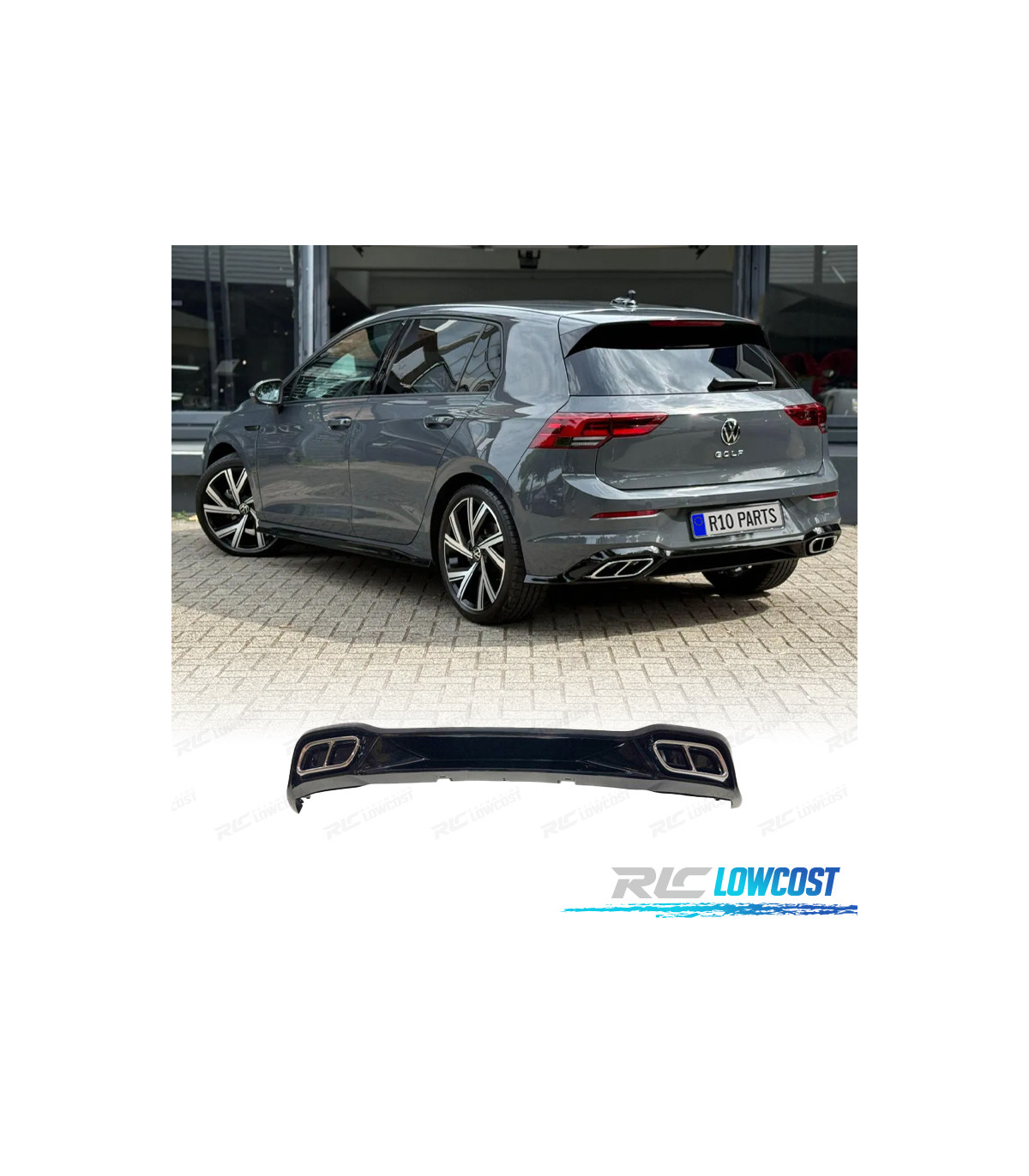 DIFFUSEUR VOLKSWAGEN VW GOLF 8 20-23 LOOK R LINE DOUBLE SORTIE