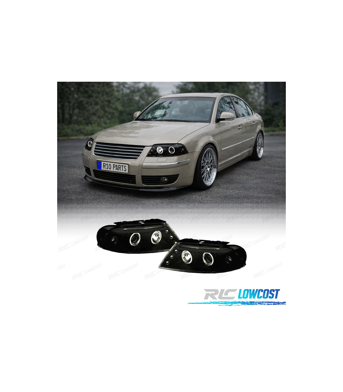 PHARES POUR VOLKSWAGEN VW PASSAT 3BG 00-05 ANGEL EYES NOIR