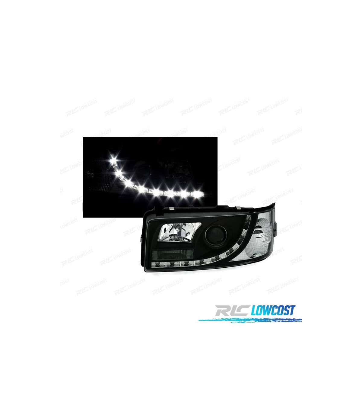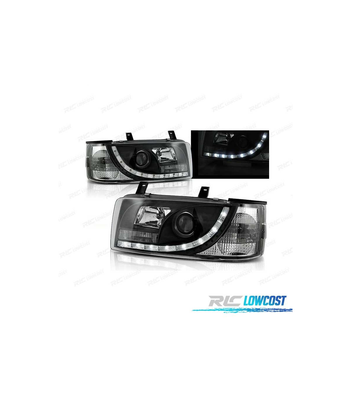 PHARES VOLKSWAGEN VW T4 TRANSPORTER 90-03 FEUX DIURNES LED FOND NOIR