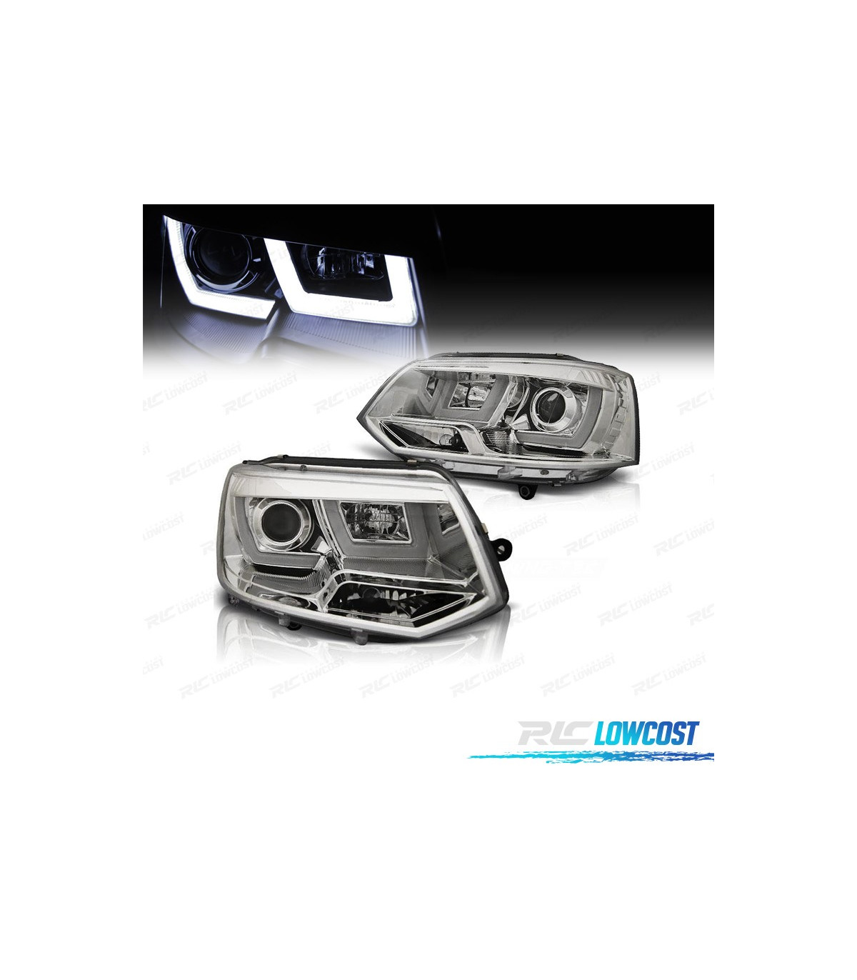 PHARES VOLKSWAGEN VW TRANSPORTER T5 10-15 TUBE LIGHT FOND CHROMÉ