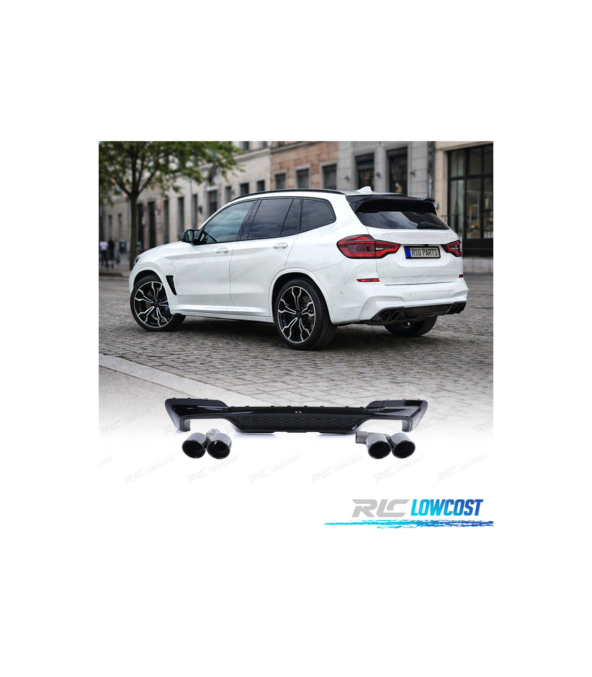 DIFFUSEUR ARRIÈRE BMW X3 G01 LOOK M PERFORMANCE NOIR BRILLANT + EMBOUTS NOIR