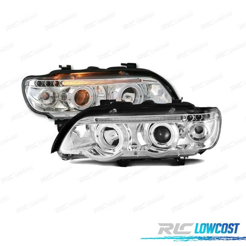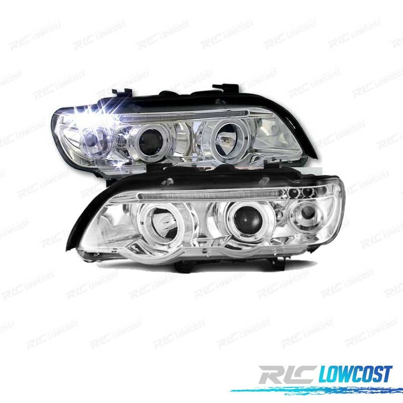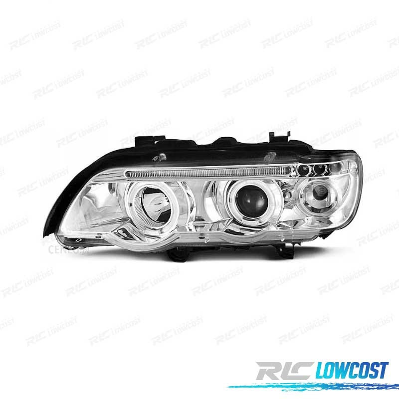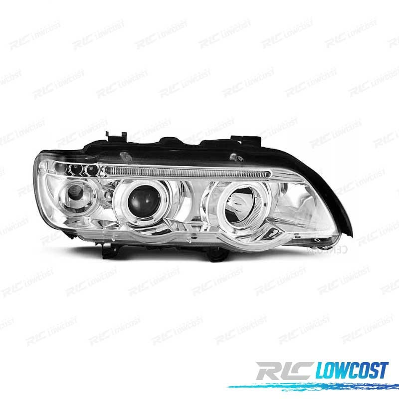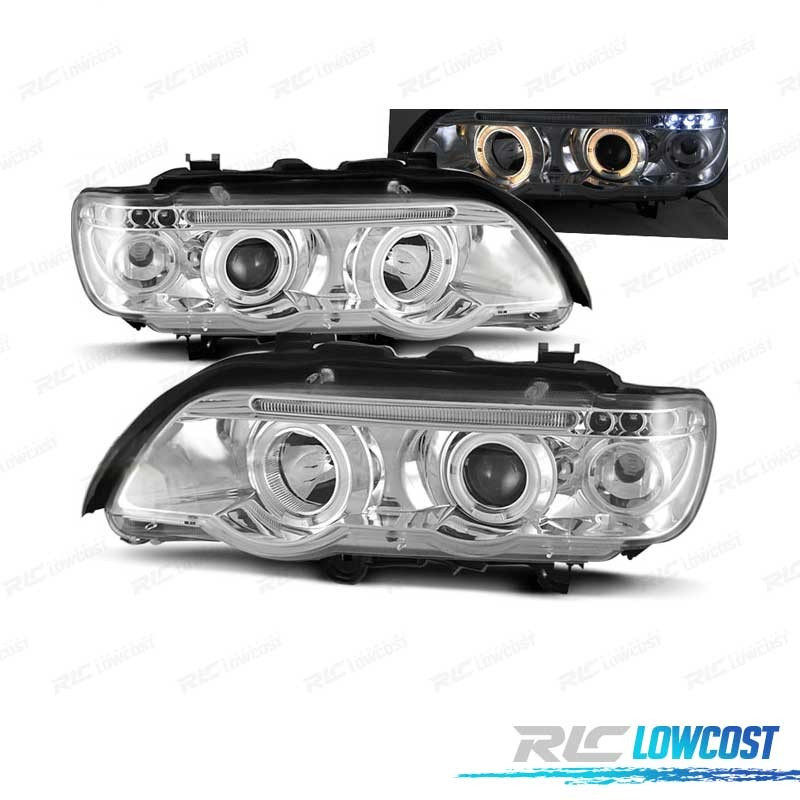 PHARES BMW ANGEL EYES BMW X5 E53 FOND CHROMÉ