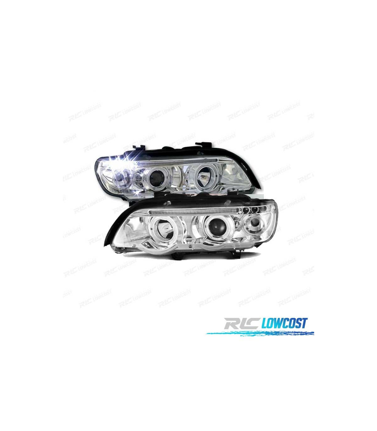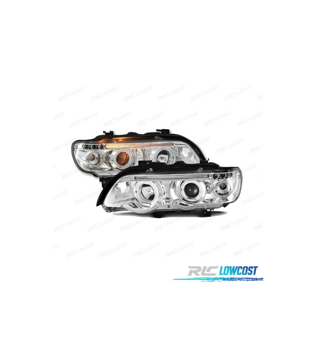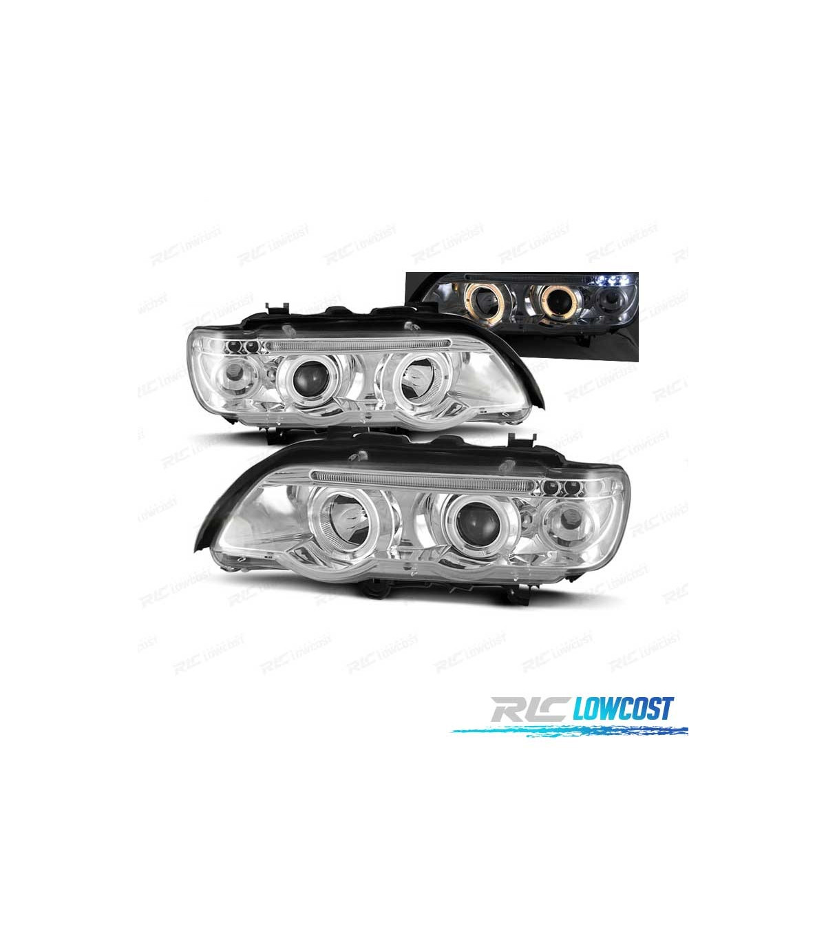 PHARES BMW ANGEL EYES BMW X5 E53 FOND CHROMÉ